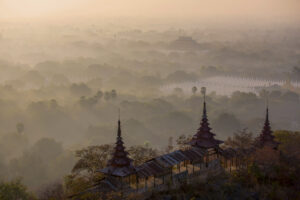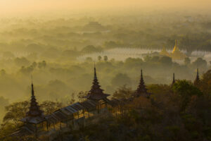 Bagan’s temple plains, Inle Lake’s floating villages, Shwedagon Pagoda’s golden dome, and the precarious Golden Rock pilgrimage site.