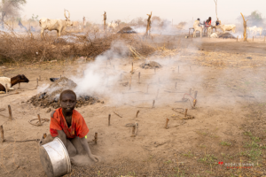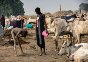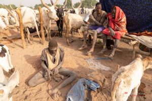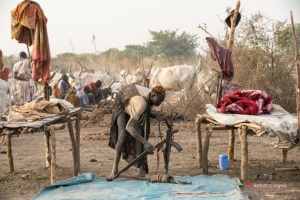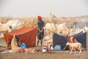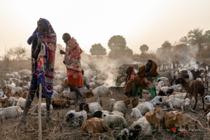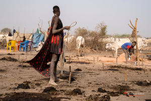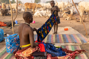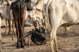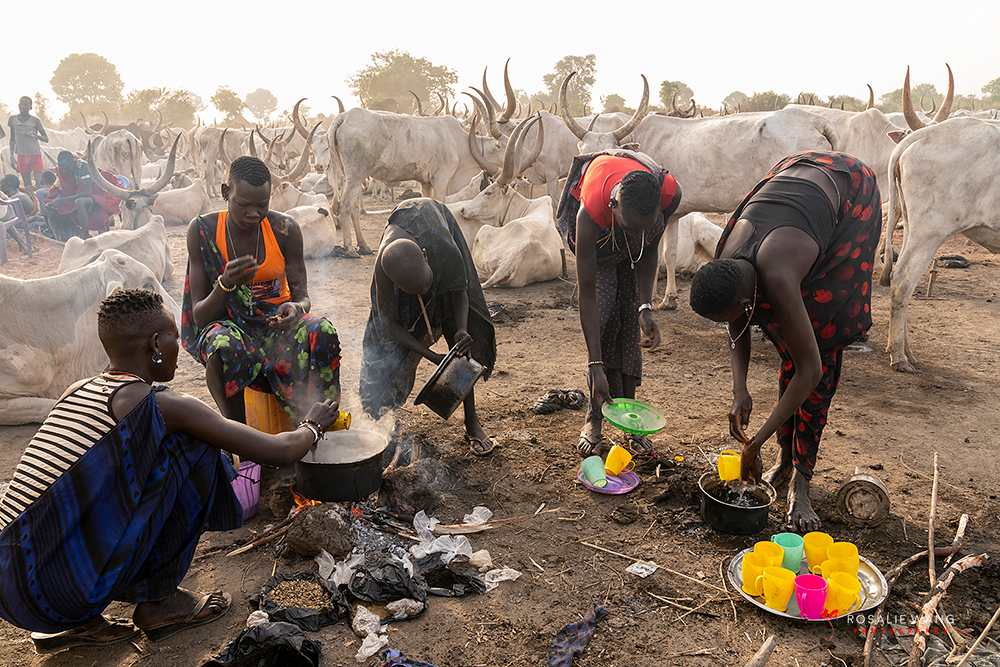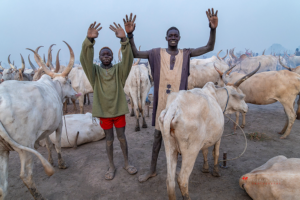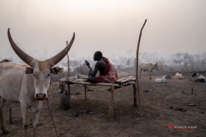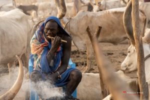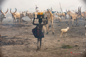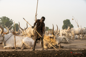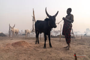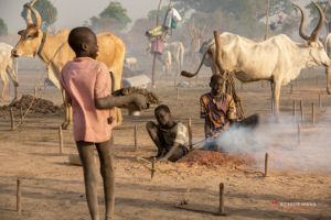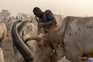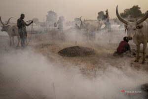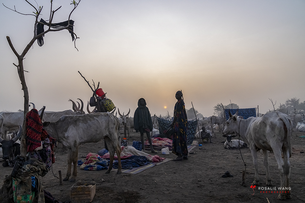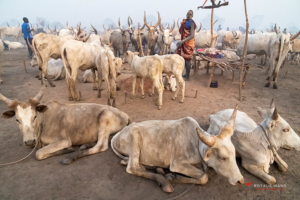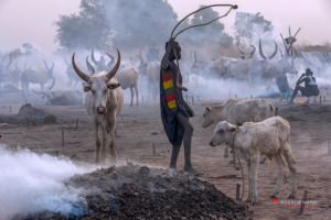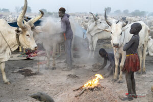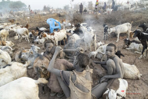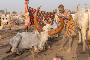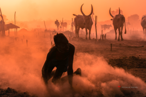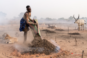 The Mundari cattle camp is one of the most visually distinctive ritual landscapes in Africa. At dawn, the camp becomes a living sculpture of ash‑coated bodies, long‑horned Ankole cattle, smoke pillars, and glowing embers.